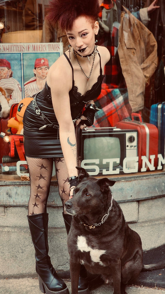Vegan Leather & Lace Bodycon Dress with Rivets