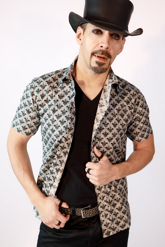 Damask Bat Cotton Button Up Shirt