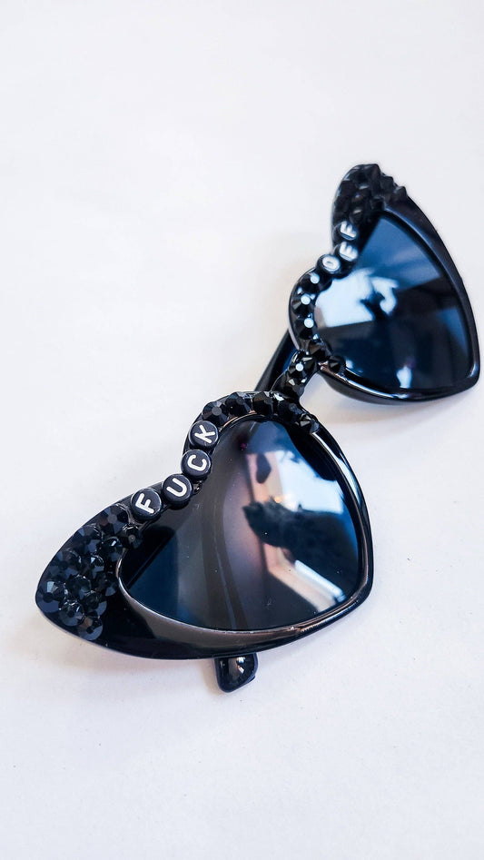 Retro Witchy Goth Heart-Shaped Sunglasses, Moons