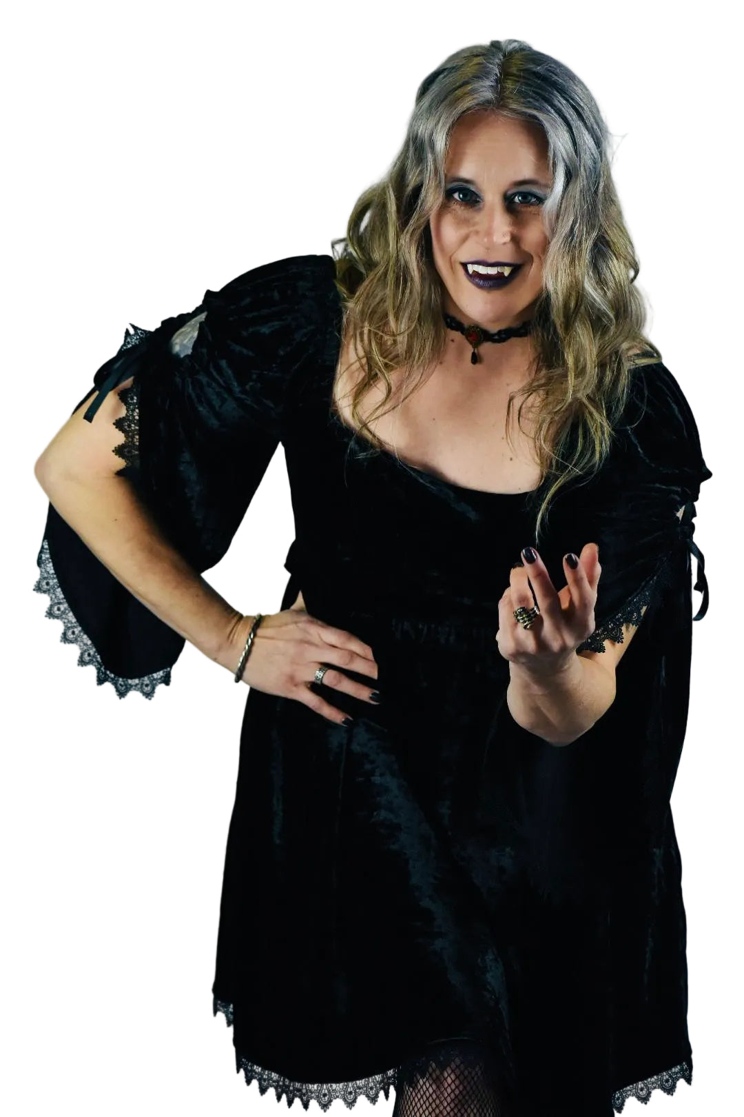 Black Gothic Baby Doll with Adjustable Gathered Statement Sleeve