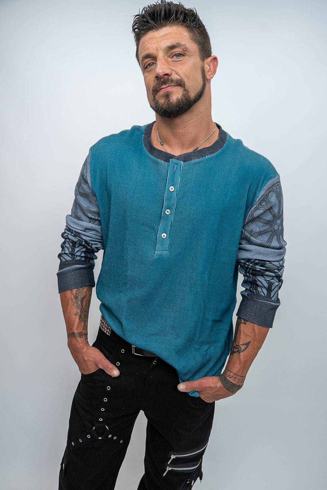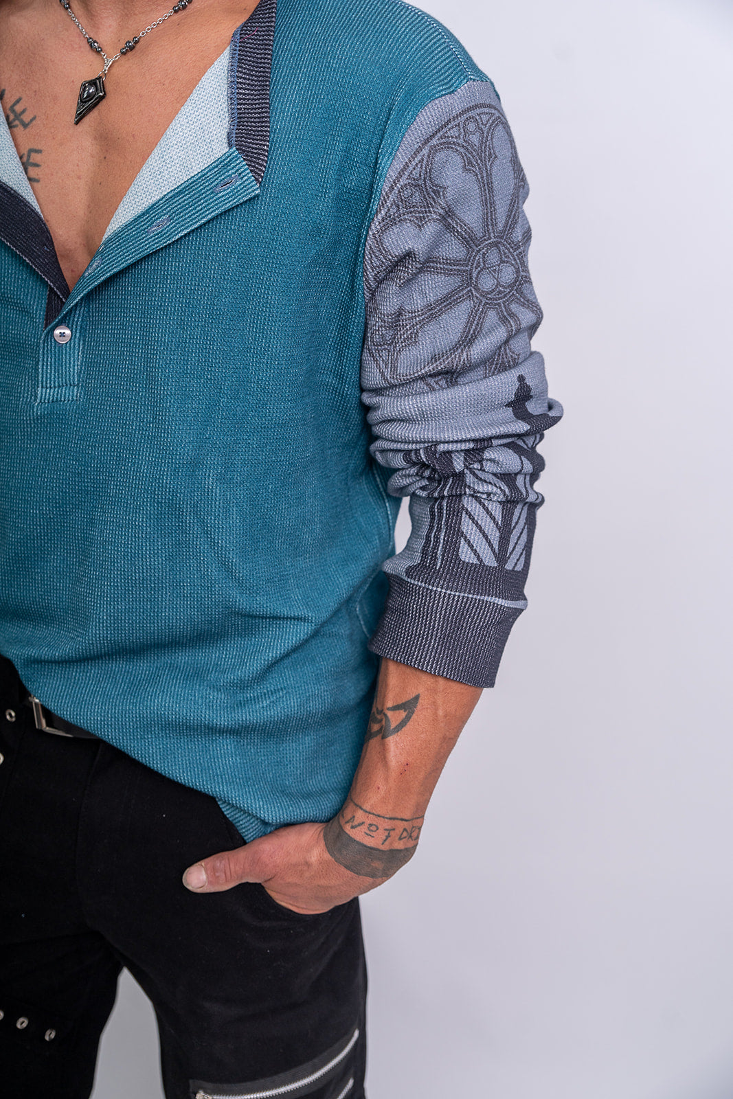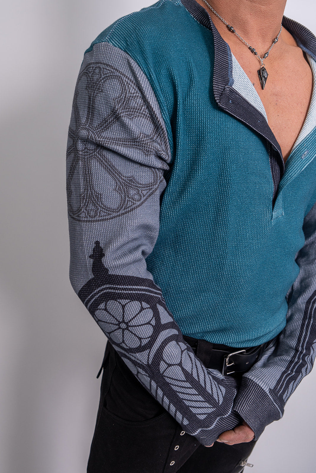 This Confession Henley is designed for both comfort and style. Crafted from 100% cotton jersey, it offers a soft and cozy feel. Its casual and chic design is inspired by gothic architecture, making it a unique addition to your wardrobe.