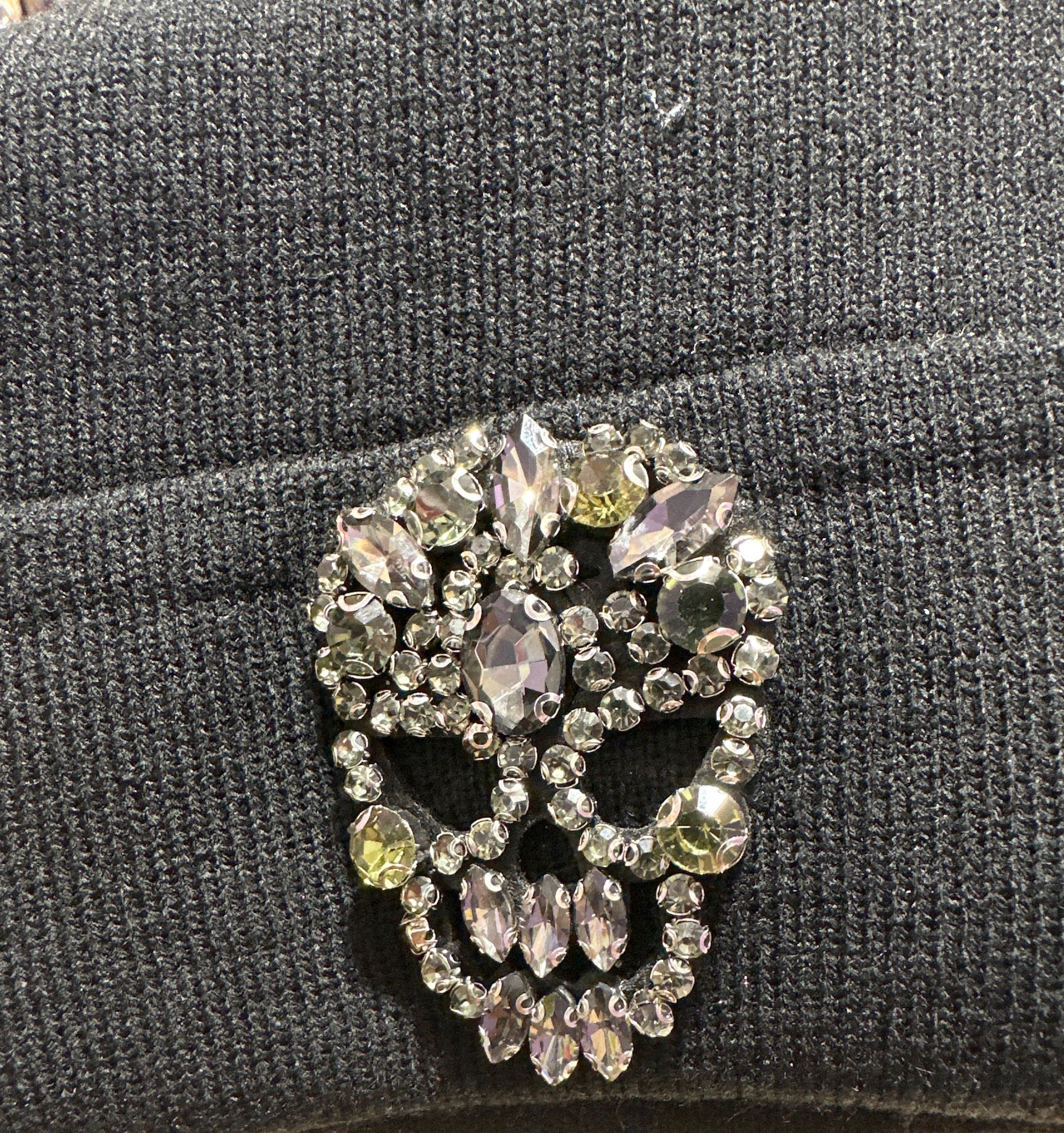 Rock an edgy vibe with this crystal skull beanie featuring a striking rhinestone emblem that catches the light. The soft knit construction keeps you warm while the folded edge delivers a polished, put-together look. Perfect for adding attitude to any outfit—whether you're heading out for the night or making a bold statement during the day. A must-have for anyone who loves fearless fashion with sparkle.