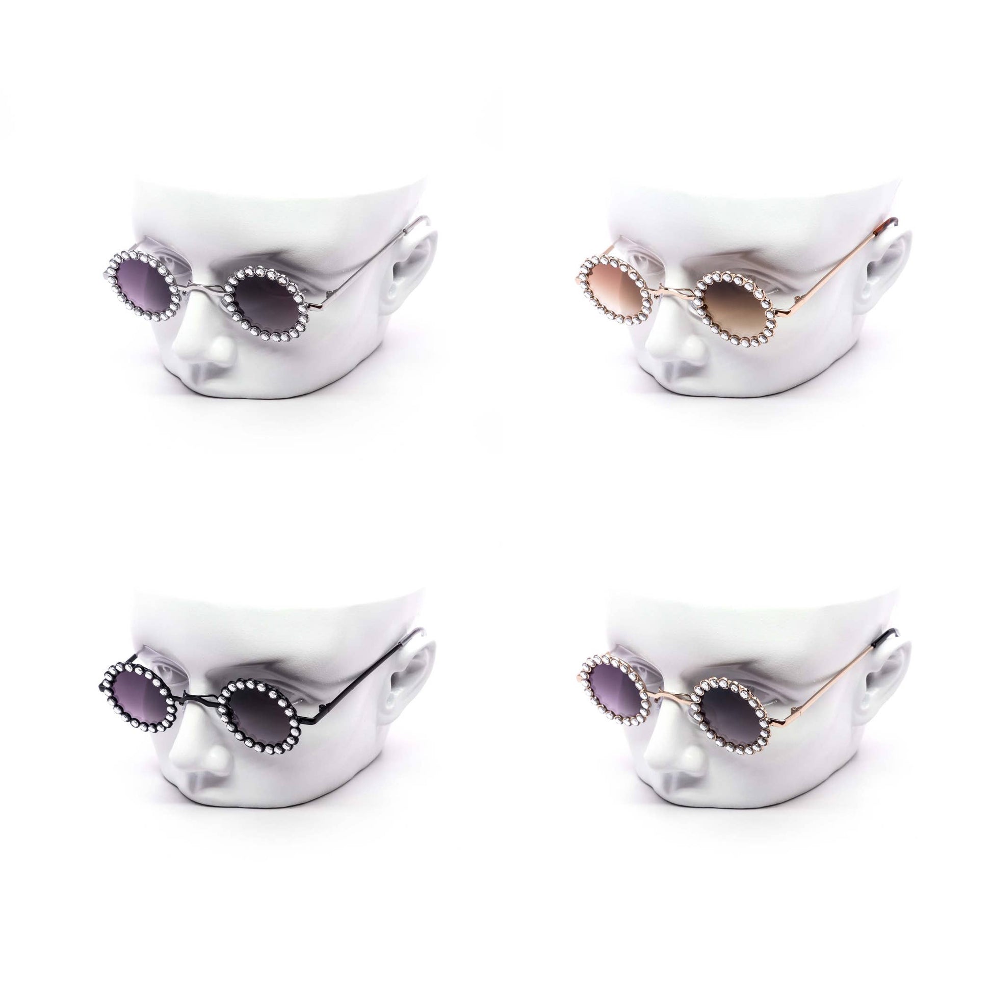 Embrace elegance with our rhinestone-infused circle sunglasses, offered in assorted metal frames and complemented by a selection of gradient lenses for a radiant, sophisticated appearance.