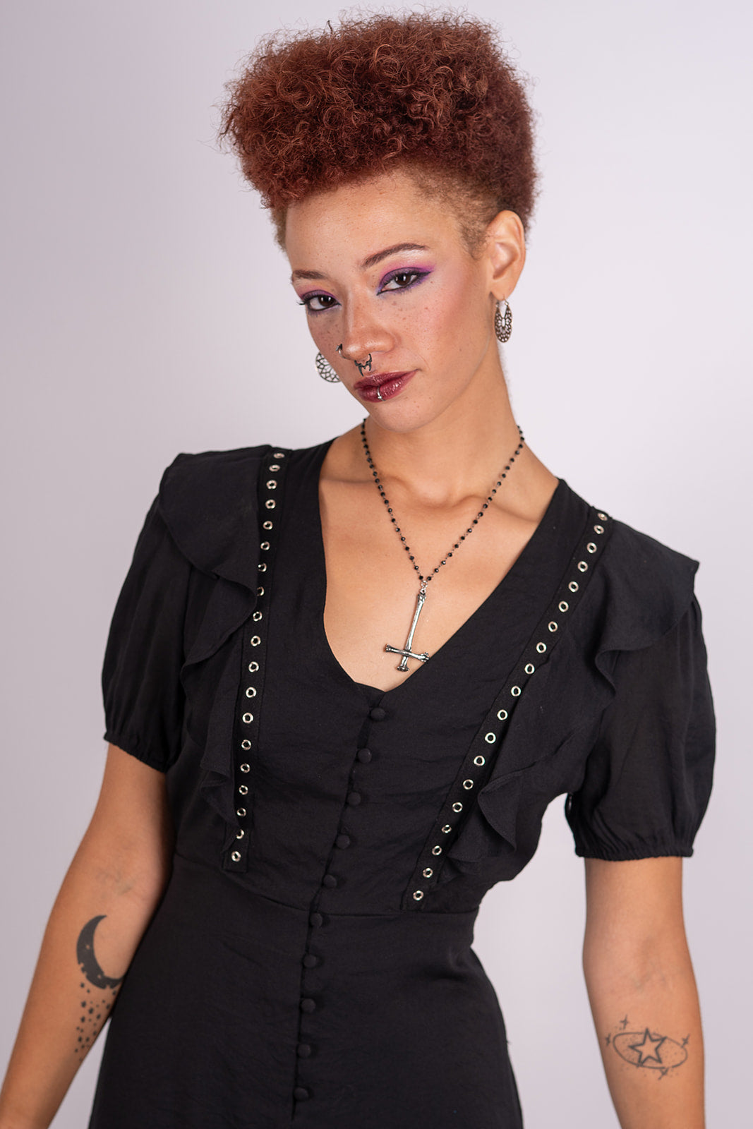 Forgive me father, for i have sinned in this adorable say your prayers dress. Made of lightweight loose weave rayon with grommet trim, this structured woven dress is fully lined and features a side zipper for easy access.