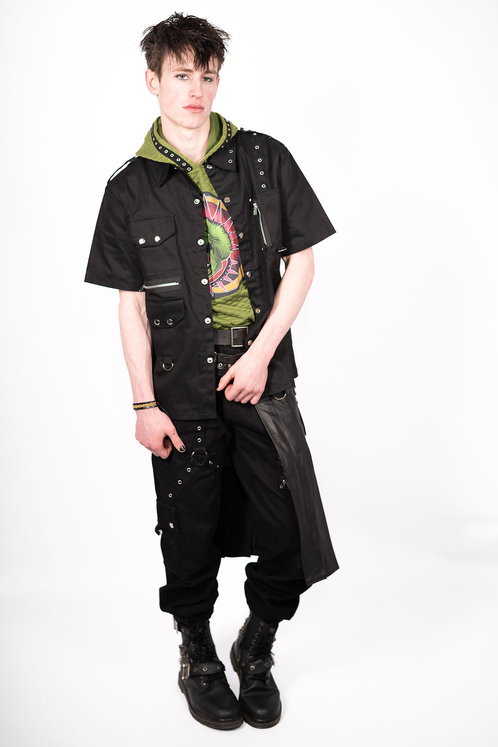 Built for those who refuse to blend in, this Tactical Snap Work Shirt combines serious functionality with edgy style. Crafted from sturdy 100% cotton twill, it features an abundance of pockets—because looking good shouldn't mean sacrificing practicality. The convenient snap closure makes getting dressed effortless, while the true-to-size fit ensures you'll feel as confident as you look. Perfect for goth and industrial fashion enthusiasts who demand both attitude and utility from their wardrobe.