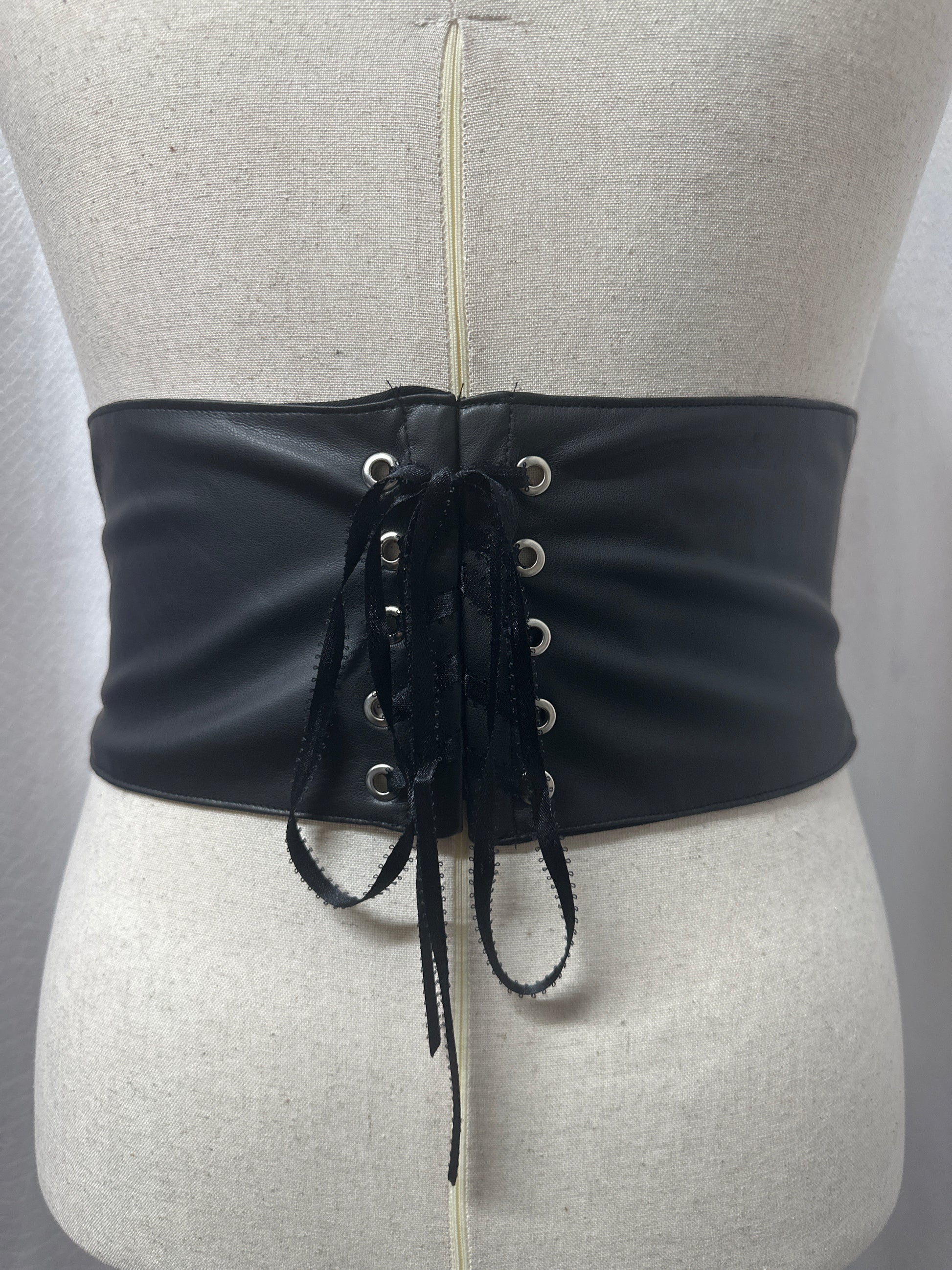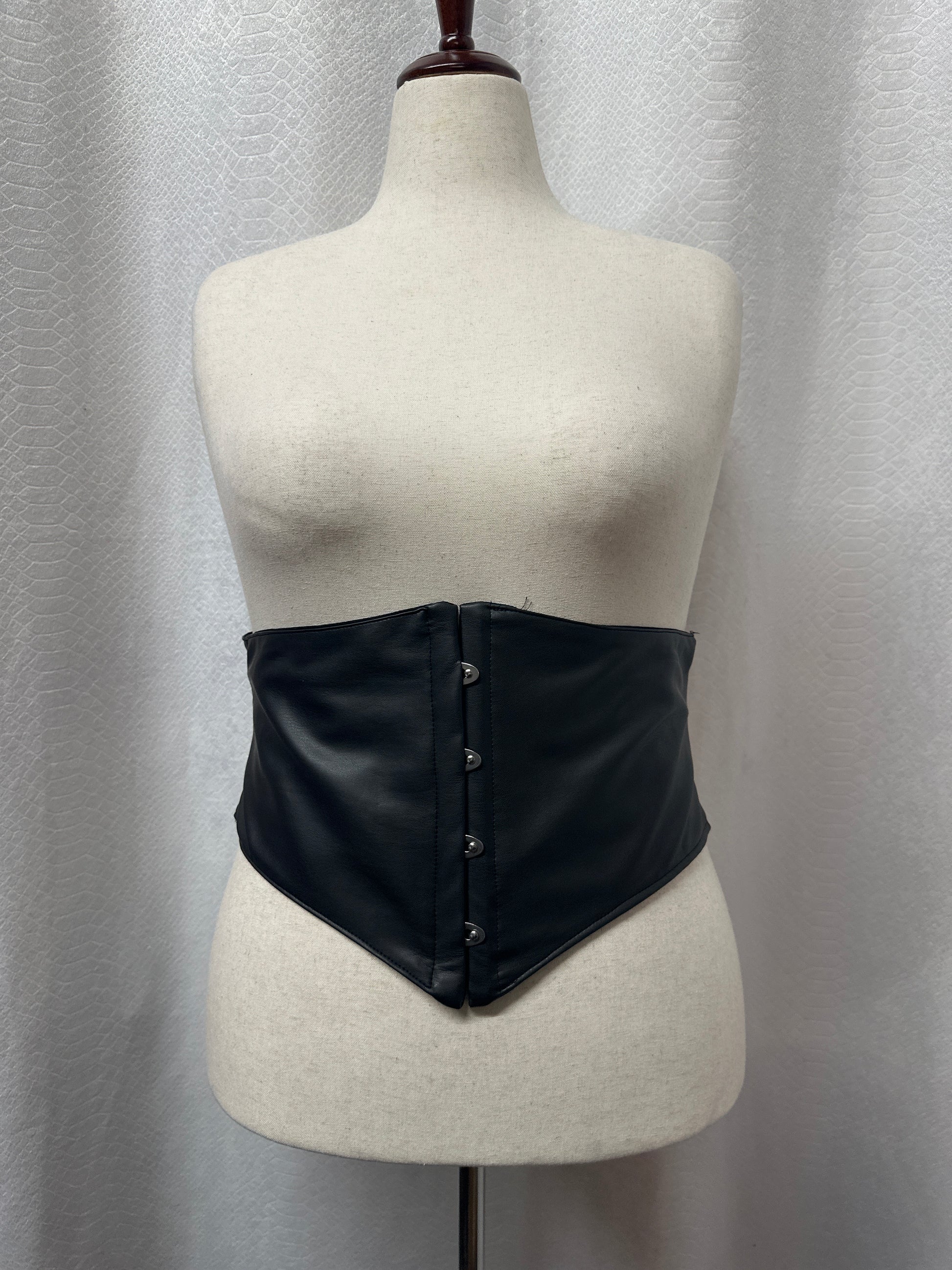 Elevate your style with this Vegan Leather Corset Belt. With a lightly boned steel front and back, front husk closure, and back lace up closure, it's the perfect accessory to add a touch of edginess to any outfit. Lined with poly twill for ultimate comfort. Time to reinvent your wardrobe!