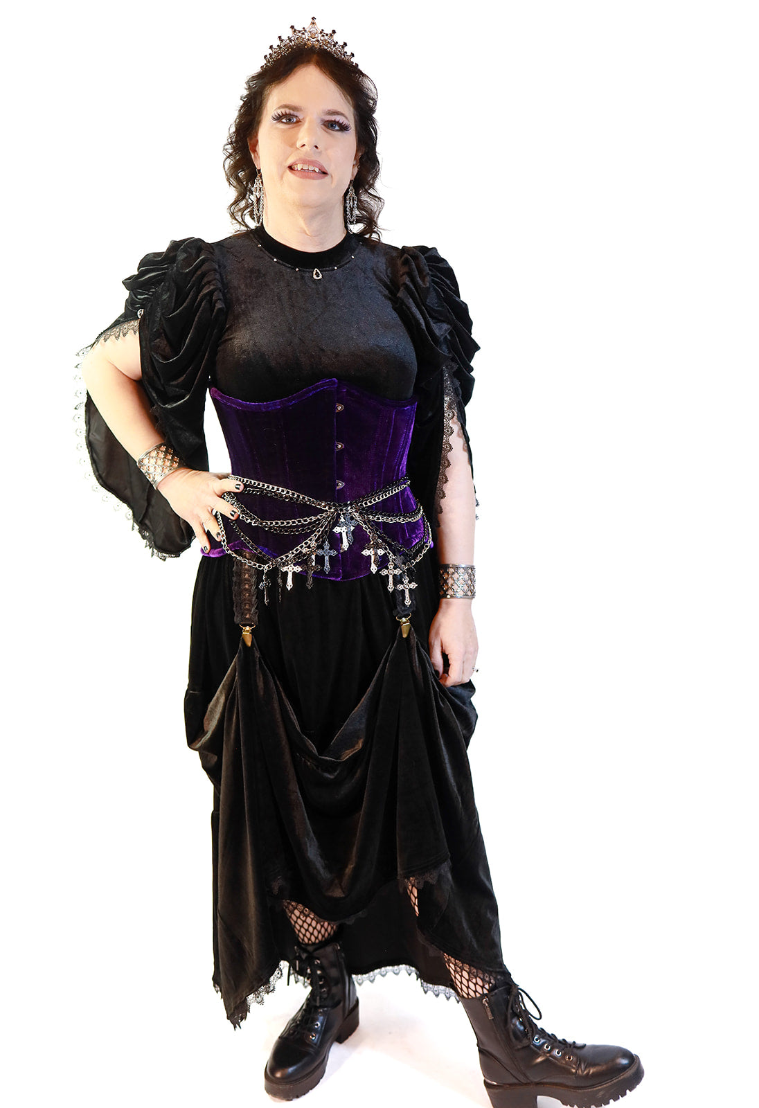 Transform your wardrobe with our luxurious Velvet Pick Up Skirt. This three-tier skirt boasts built-in skirt hikes for versatile styling and gothic lace trim for an edgy touch. Finished with bronze hardware, this skirt exudes sophistication and exclusivity. Elevate your look today.